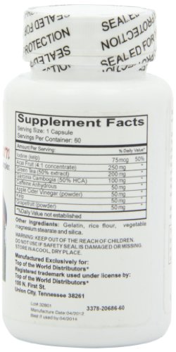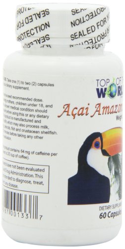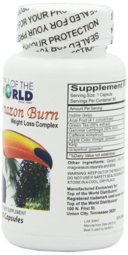 -. Binding : Health and Beauty -. Brand : Top of the World -. EAN : 0879987001337 -. Feature : Metabolism Booster / Energy Booster -. Label : Top of the World -. Manufacturer : Top of the World -. Model : WL1088 -. MPN : WL1088 -. NumberOfItems : 1 -. PackageQuantity : 1 -. PartNumber : WL1088 -. ProductGroup : Health and Beauty -. ProductTypeName : HEALTH_PERSONAL_CARE -. Publisher : Top of the World -. ReleaseDate : 2015-06-22 -. Studio : Top of the World -. Title : Top of the World Naturals Acai Amazon Burn, 60 Capsules -. UPC : 879987001337