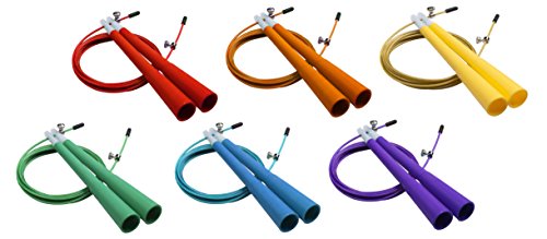 Studio : Champion Sports Publisher : Champion Sports Binding : Sports Product Description Made with durable and lightweight 3 mm wire cables, each rope in this Champion Sports double bearing speed jump rope set adjusts easily to fit the height and needs of each jumper. The jump ropes are designed for speed jumping, with a double bearing system in the handles to allow for faster and smoother spins. Ideal for use both outdoors and in the gym, the speed jump rope set features six brilliant colors. 0