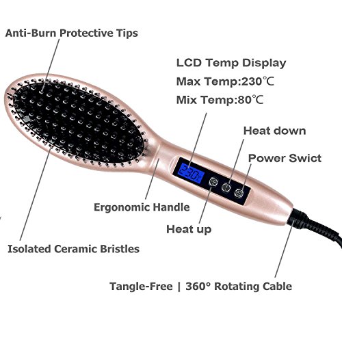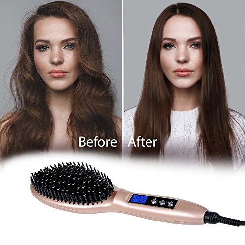 Kamo Ionic Hair Straightening Brush, Best PTC Ceramic Heating Hair Straightener Brush with Anion Care