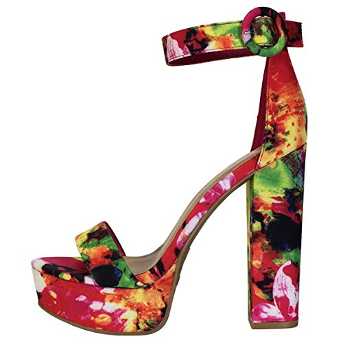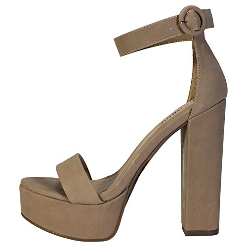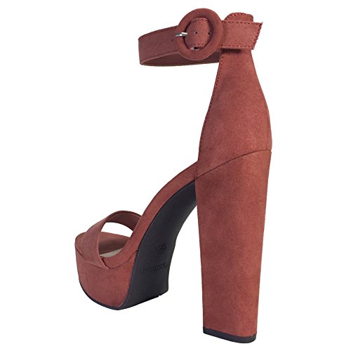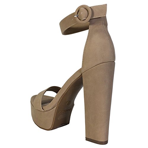| Bamboo Women's Chunky Heel Platform Sandal With Ankle Strap |