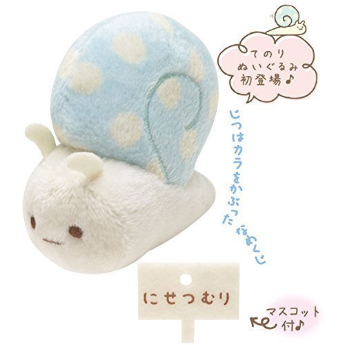 -. Binding : Toy -. Brand : San-x Sumikko Gurashi -. EAN : 4974413623643 -. Feature : Authentic San-X Product from Japan / Size about 60 × 50 × 50mm / Made of soft BOA -. IsAdultProduct : 0 -. Label : San-x -. LegalDisclaimer : Brand New & Factory Sealed. Its package and manual are written in Japanese. This item is delivery from the Amazon warehouse in the US. -. Manufacturer : San-x -. MPN : MP86208 -. PackageQuantity : 1 -. PartNumber : MP86208 -. ProductGroup : Toy -. ProductTypeName : HOBBIES -. Publisher : San-x -. Studio : San-x -. Title : San-x Sumikko Gurashi Plush 2'' Fake Snail w/ Mini Name Tag -. UPC : 799457347270
