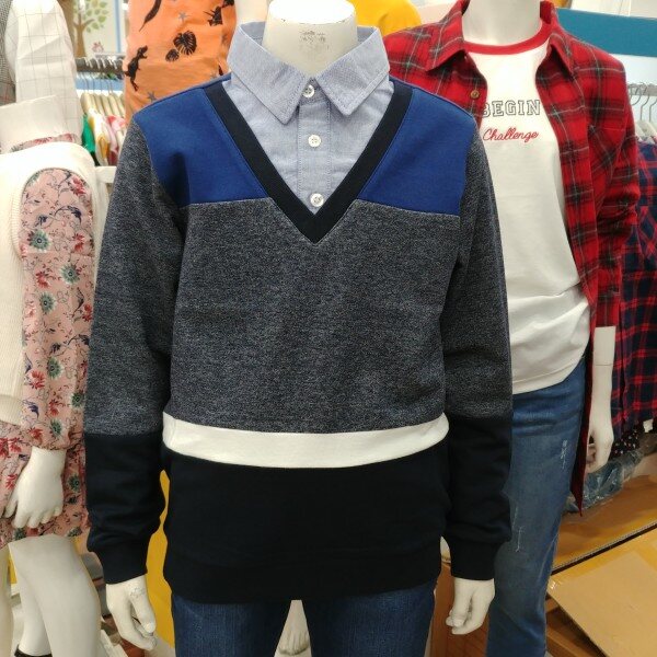 안정감과 편안함이 엿보이는 남학생용 셔츠 레이어드 티셔츠입니다.가을 겨울 멋있는 티셔츠입니다.