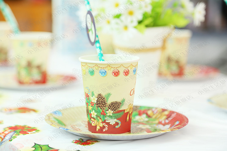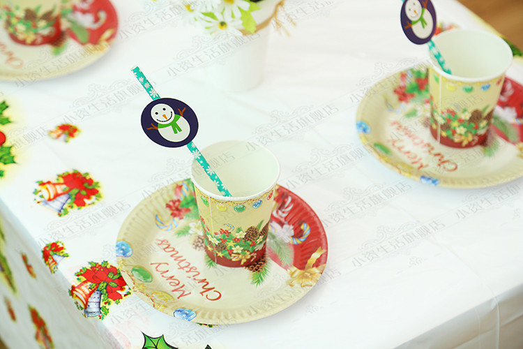Tips:The kit includes: 10 paper cups, 10 7-inch paper trays, 10 9-inch paper trays, 25 straws, 1 tablecloth.