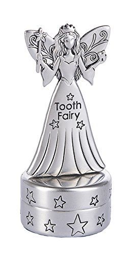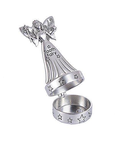 Product Description This mini tooth fairy figurine box for storing babies' teeth stands 2.25"H and is made of a highly polished zinc metal. Features a hinged magnetic closure. 0
