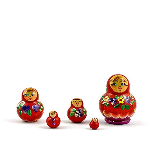 -. Title : 1.75" Set of 5 Red Dress Miniature Wooden Russian Nesting Dolls