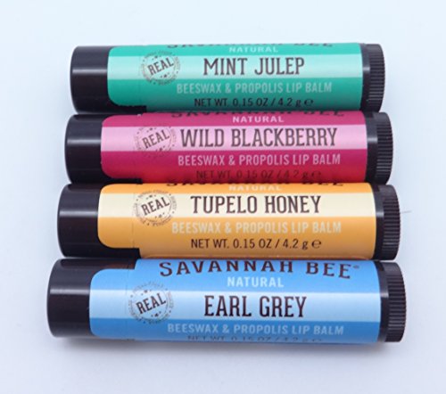 Savannah Bee Natural Beeswax Lip Balm Sampler Set 1 each Blackberry, Mint Julep, Tupelo & Earl Grey