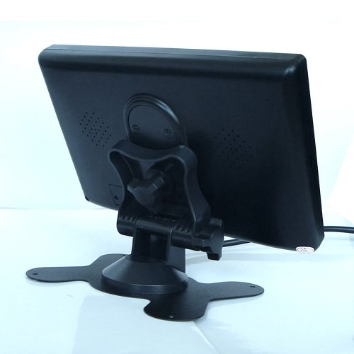 - Feature : With 2 AV input. AV1 connects to car DVD, VCR and other video equipment. AV2 to car backup camera. / Working perfectly with Car DVD, VCD, camera, STB, satellite receiver, and other video equipment. / Support rotating the screen. Screen ratio 16:9/4:3 adjustable. Support adjust the Brightness, contrast, color. / 2 ways to install: standing or mounting. Comes with an IR remote controller for a easy operation. / Low power consumption. No Audio input or output.