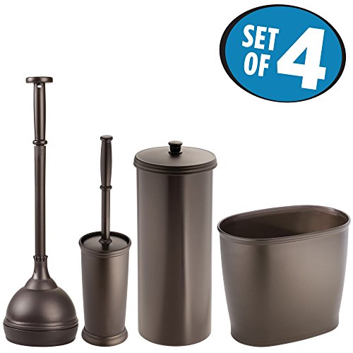 Comes with plunger, toilet brush, toilet paper roll canister and oval trash can - Matching 4-piece set will enhance your bathroom decor!