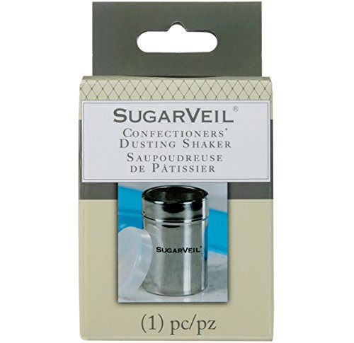 Studio : SugarVeil Publisher : SugarVeil Binding : Kitchen Product Description The SugarVeil Confectioners' Dusting Shaker is perfect for evenly distributing sugars and powders when working with SugarVeil Mats and icing, and to dust goodies and beverages with powder accents for a professional-looking appearance. The cylindrical body is made of durable stainless steel with a mesh top that easily unscrews for adding up to one cup of dry ingredients, and the protective plastic lid ensures freshness of stored dry ingredients. 0