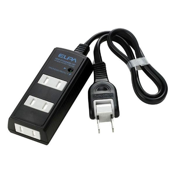 雷から接続機器を守る耐雷サージ機能付きの、コード付タップです。屋内専用。 製造国:中国 ※サプライヤー直送品 ご注文後3~4営業日後の出荷となります【商品名】ELPA(エルパ) 耐雷サージ コード付タップ 5m 3個口 ブラック WBT-3050SBN(BK)