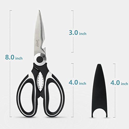 MEANINGFUL ADDITIONAL FUNCTIONS: Use multi-function kitchen shears for opening bottles, cracking nuts, cutting bone, scraping fish scales. These are common needs in the kitchen. Staying true to its mission of staying focused and performing well on existing functions.