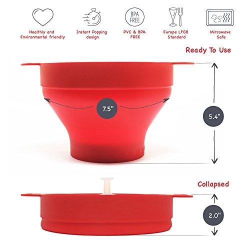LuxKitto Microwave Popcorn Popper, Collapsible Silicone Bowl, Pop Organic Microwave Popcorn Faster, A No Oil Low Fat Popcorn Maker, A Healthy Snack Cooker