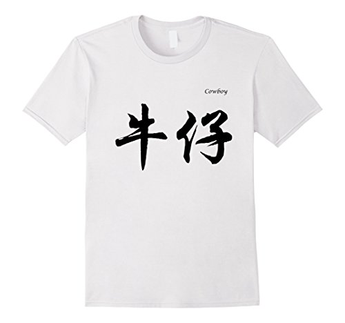 Mens Cowboy in Chinese Calligraphy Characters T-Shirt XL White