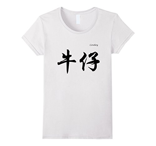 Womens Cowboy in Chinese Calligraphy Characters T-Shirt Medium White