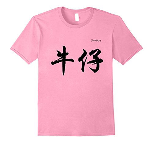 Mens Cowboy in Chinese Calligraphy Characters T-Shirt Small Pink