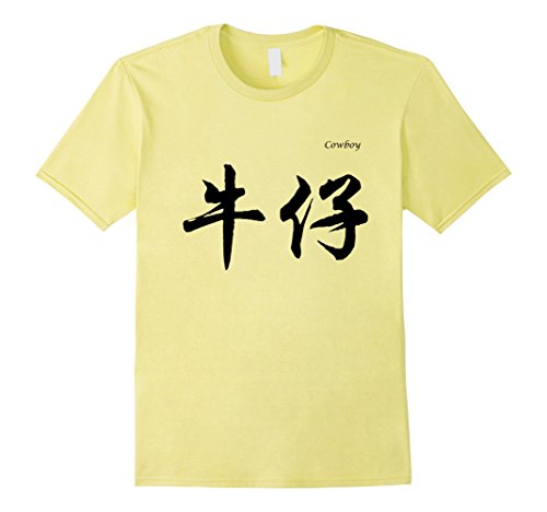 Mens Cowboy in Chinese Calligraphy Characters T-Shirt Small Lemon