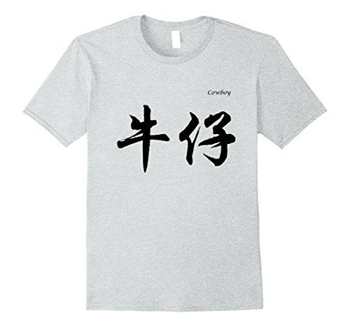 Mens Cowboy in Chinese Calligraphy Characters T-Shirt Medium Heather Grey