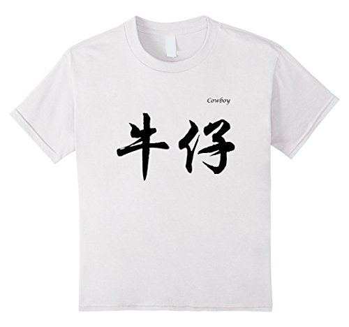 Kids Cowboy in Chinese Calligraphy Characters T-Shirt 12 White