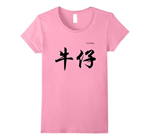 Womens Cowboy in Chinese Calligraphy Characters T-Shirt Small Pink