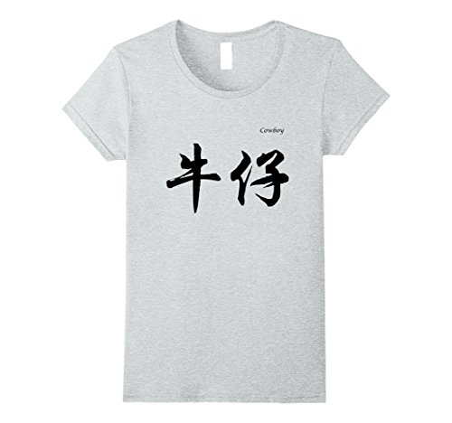 Womens Cowboy in Chinese Calligraphy Characters T-Shirt XL Heather Grey