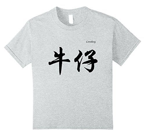 Kids Cowboy in Chinese Calligraphy Characters T-Shirt 10 Heather Grey