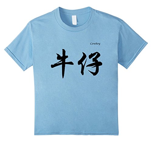 Kids Cowboy in Chinese Calligraphy Characters T-Shirt 12 Baby Blue
