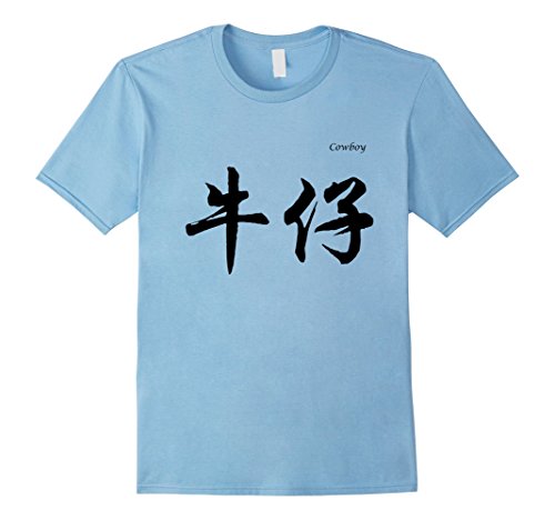 Mens Cowboy in Chinese Calligraphy Characters T-Shirt XL Baby Blue
