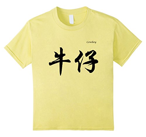 Kids Cowboy in Chinese Calligraphy Characters T-Shirt 12 Lemon