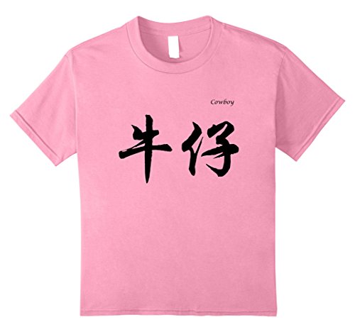 Kids Cowboy in Chinese Calligraphy Characters T-Shirt 12 Pink