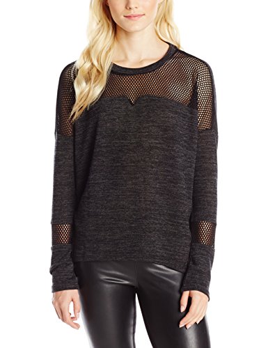 Sweater featuring sweetheart neckline with mesh panels at yoke and forearms