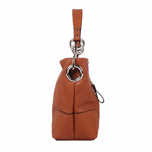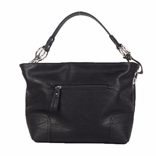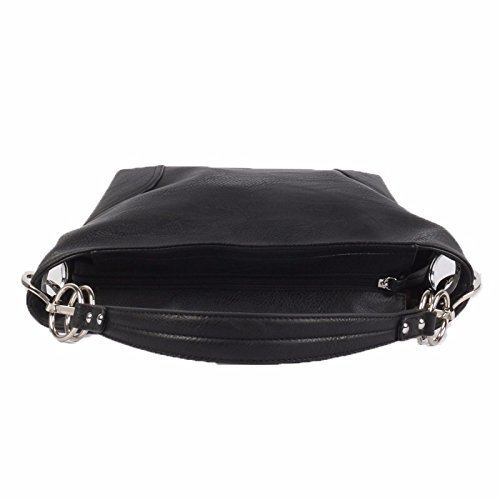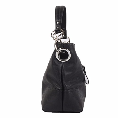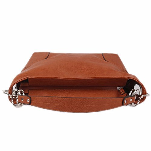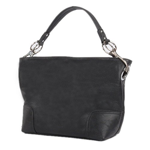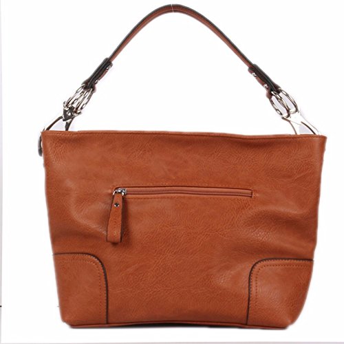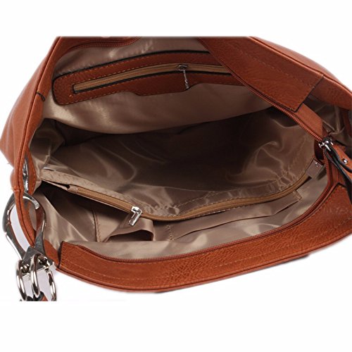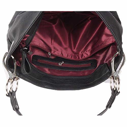 Product Description Women's Shoulder Hobo Bag with Big Hook Clasps and Zipper Closure. The roomy interior has a zipper security compartment and a center inner liner zipper pocket divider. This bag is the perfect accessory for any occasion. 0