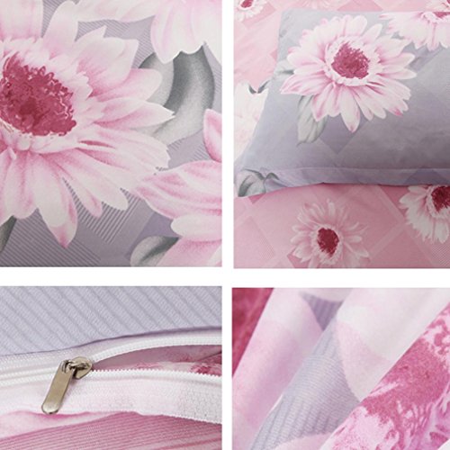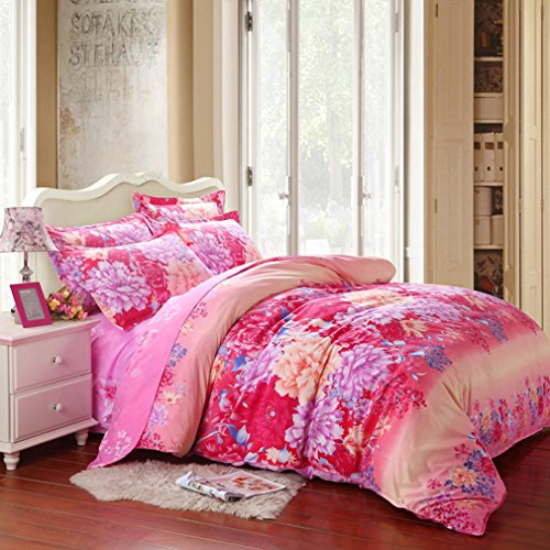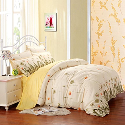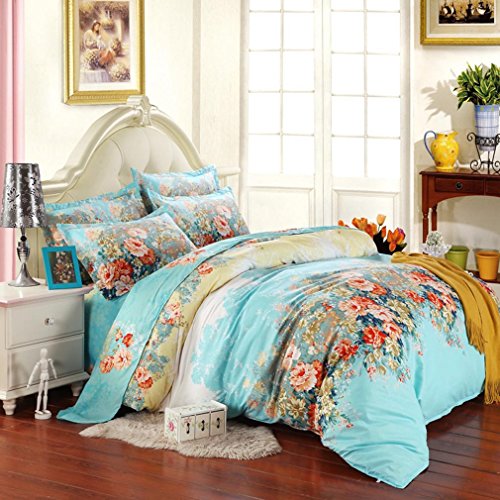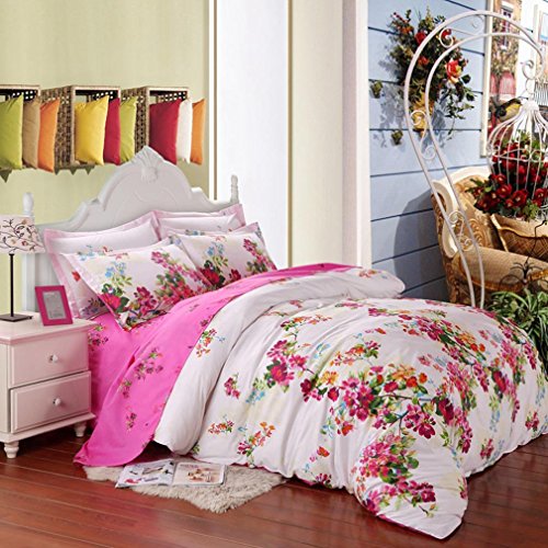 SAYM Home Bedding Sets Elegant Rural Style Print Lovely Teen Girls 100% Polyester Fiber Duvet Cover, Flat Sheet, Shams Set 4Pieces Queen