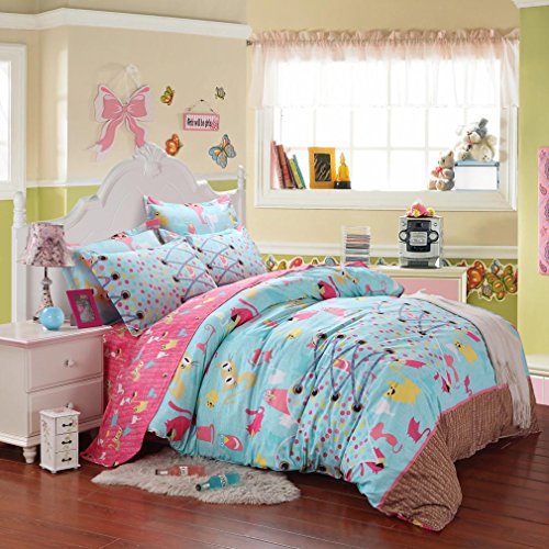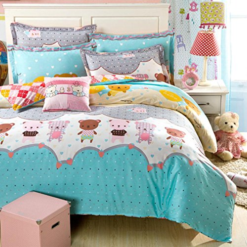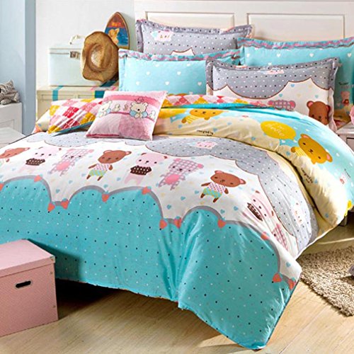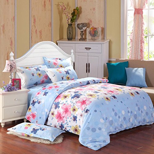 SAYM Home Bedding Sets Elegant Rural Style Print Kids Set For Lovely Teen Girls 100% Polyester Fiber School Duvet Cover,Flat Sheet,Shams Set 4Pieces Sky Twin