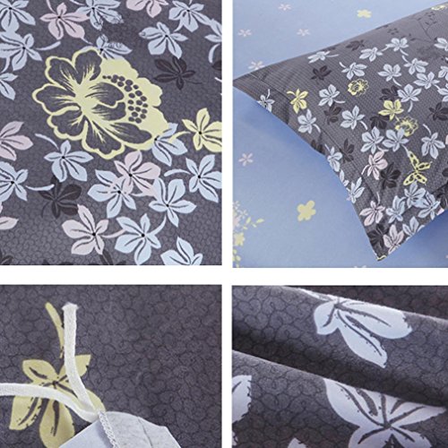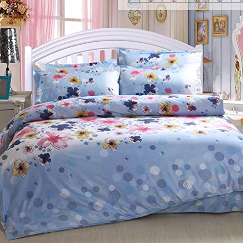 SAYM Home Bedding Sets Elegant Rural Style Print Kids Set For Lovely Teen Girls 100% Polyester Fiber School Duvet Cover,Flat Sheet,Shams Set 4Pieces Blue Queen