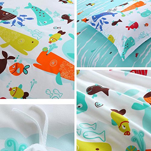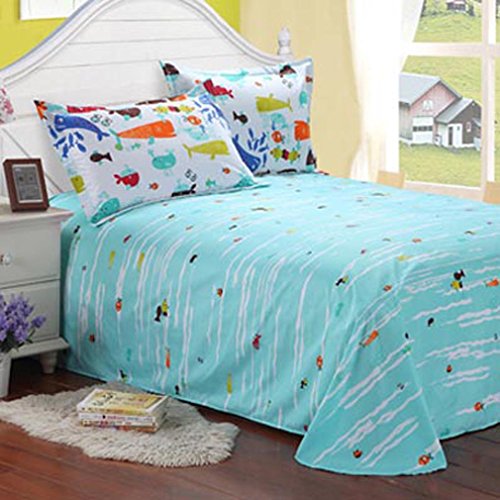 SAYM Home Bedding Sets Elegant Rural Style Print Kids Set For Lovely Teen Girls 100% Polyester Fiber School Duvet Cover,Flat Sheet,Shams Set 4Pieces Fish Twin