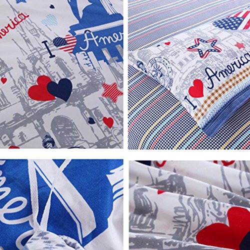 SAYM Home Bedding Sets Elegant Rural Style Print Set For Lovely Teen Girls 100% Polyester Fiber Duvet Cover, Flat Sheet, Shams Set 4Pieces Love Twin