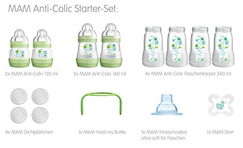 Das MAM Anti-Colic Starter-Set ist ein ideales Flaschen-Set das mitwächst. Kleine, mittlere und große Flaschen können individuell kombiniert werden ...so haben Sie immer die richtige Flasche zur Hand. Die MAM Anti-Colic sorgt mit ihrem innovativem Anti-Colic-Bodenventil für einen gleichmäßigen Trinkfluss. Ventilationslöcher regulieren den Druckausgleich. Dadurch fließt die Nahrung völlig gleichmäßig ohne Luftblasen, ohne Aufschäumen. Babys schlucken damit weniger Luft und können entspannter trinken.