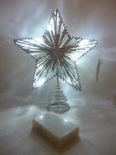This tree top star will look amazing on top of your tree. The decoration would also look great on a mantle piece or on your office desk. The gorgeous star decoration has white LED lights. LED lights are super bright and long life. The star takes 3 x AA batteries. Product size 20.5 x 8 x25cm .