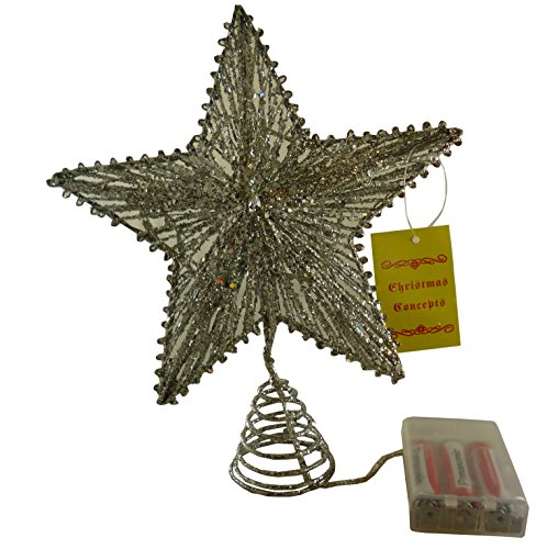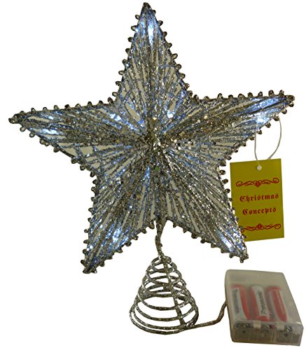 8" SPRINGY STAR WITH WHITE LED LIGHTS - CHRISTMAS TREE TOP STAR / CHRISTMAS DECORATION
