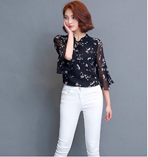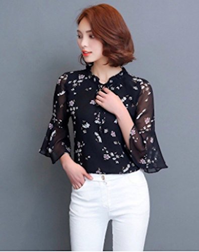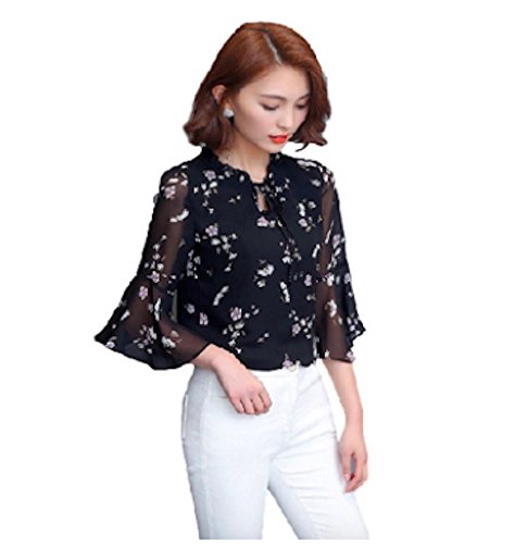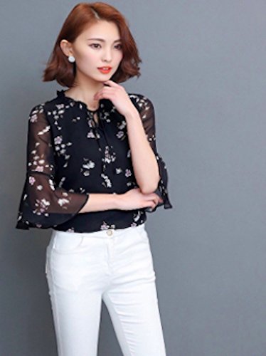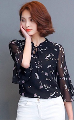 -. Title : (エークローゼット) A CLOSET エレガント 7分 フレア袖 花柄 ブラウス 長袖