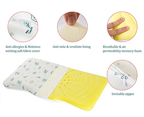 Baby Pillow Support Head and Neck in Bed, Soft Memory Foam Toddler Pillow with White Cotton case - Removable and Washable