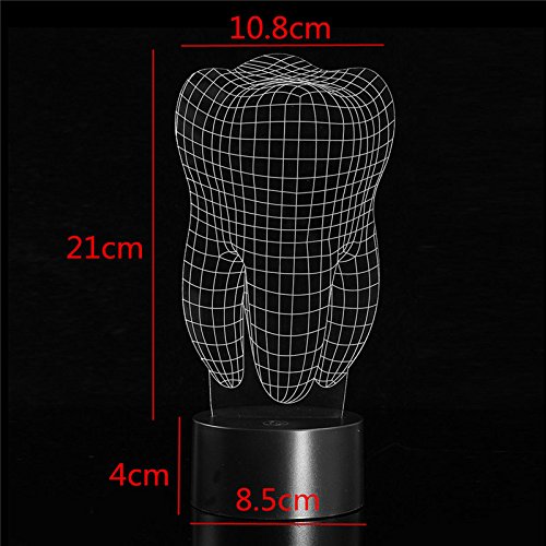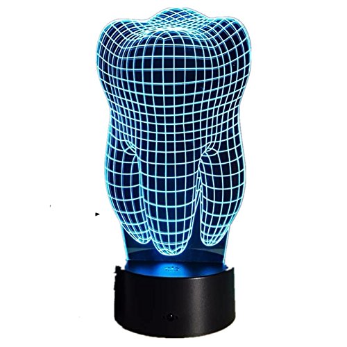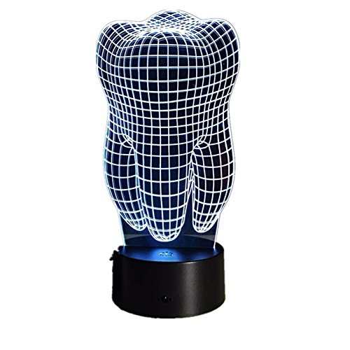 -. Feature : Novelty Design Tooth Shape 3D Illusion LED Table Lamp NightLight KIDS Colorful Table Touch Lamp Gift for dentist / 3D design lamp, just like a real one. Two modes, seven colors for a better performance. Made by acrylic, envrironmental and safe to use. / Color: red-green-blue-yellow-cyan-purple-white--auto flashing Easy-to-Use,Easy-to-Carry! / Tooth Light 3D illusion Nightlight Optical Illusion LED Desk Lamp Color Change Mood Lamp Bedroom Decorative Birthday Gifts / Perfect for displaying in bedroom, child room, living room, bar, shop, cafe, restaurant and more as decorative light or night light. Best gift for your kids, friends, relatives or your lovers.