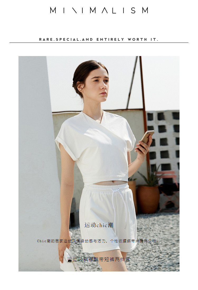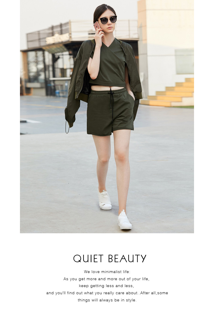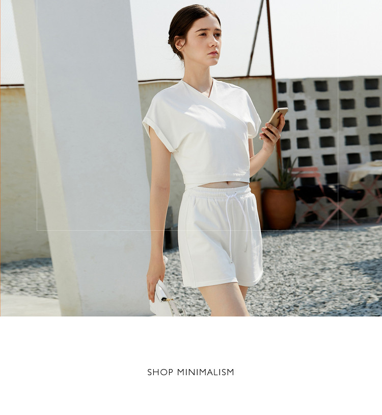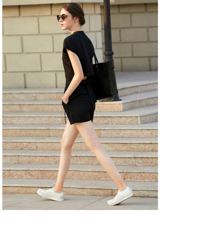 简洁的运动短裤将长腿特质放大,收束腰肢衬托整体廓形如此简洁毫无压抑。