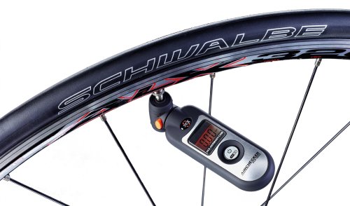 - Feature : Compact, convenient bicycle tool can be used to quickly and accurately measure tire pressure / Quick release valve can be used to bleed off excess air if necessary / Large, backlit digital display shows pressure in both bar and PSI formats / Rotary head ensures easy access and use on either Presta or Schrader valves / Lightweight pressure gauge weighs just 45 grams