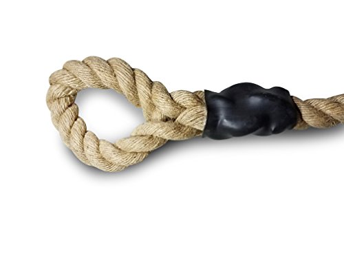 High Quality Construction Our gym climbing rope is made to high quality standards with the following specifications: 25 feet in length and 1.5 inches in diameter Made of sisal rope that supports 300 pounds weight capacity when mounted correctly Heavy duty vinyl sleeves protect the ends of the rope and increase durability Hand braided loop allows for easy mounting Since this material performs best when dry, it is recommended that it is stored inside