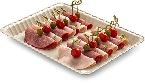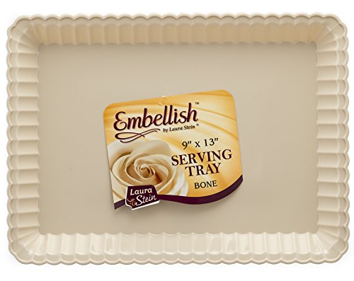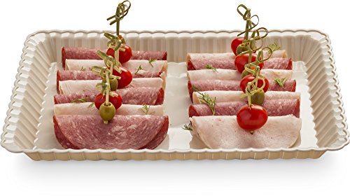 Embellish Rectangle Plastic Bone Serving Tray 9'' x 13'' Pack of 4, Bone,