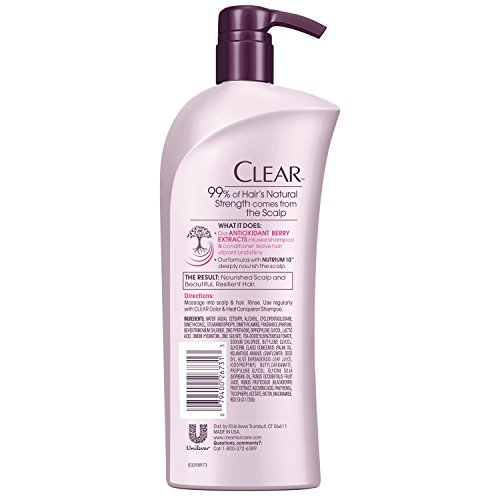 Clear Color and Heat Conqueror Shampoo and Conditioner soothe your scalp. Our ANTIOXIDANT BERRY EXTRACTS infused shampoo and conditioner leave hair vibrant and shiny, and our formulas with NUTRIUM 10 deeply nourish the scalp. Coloring, blow-drying and frequent processing and use of heat tools may leave your scalp feeling dry and tight. Our Color and Heat Conqueror system is designed to restore the scalp's natural moisture barrier. BERRY EXTRACTS rich in antioxidants are known to help prevent damage. Used daily with the shampoo, the conditioner alleviates dry, tight scalp leaving your scalp feeling moisturized and healthier.Feature