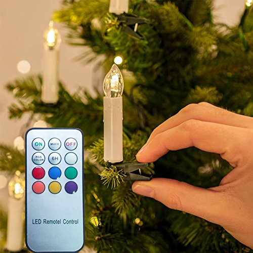 Set of 10 Led Candle Light Flameless Flickering RGB Color Changing LED Candles Lights with Clips Remote Control for Wedding Christmas New Year Home Tree Decoration