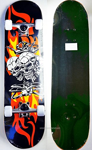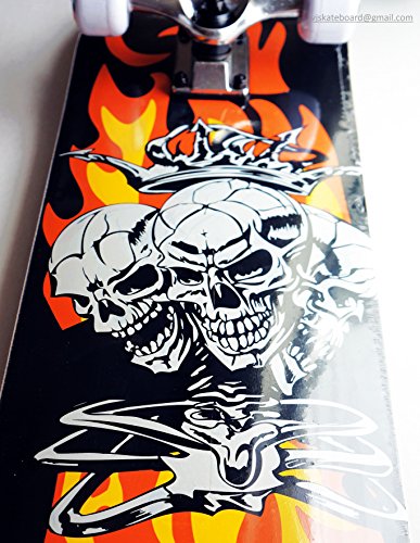 -. Title : Vj 31" X 8" Double Kick Tail Skateboard Complete Grip Tape Top Fire Skulls Graphic