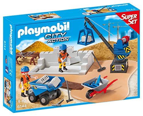 -. Feature : Construct buildings of any size with the Construction Site Super Set / Children can play with this set on its own, or combine with other PLAYMOBIL sets for hours of fun / Set includes two figures, crane, wood bench, wooden planks, saw, shovel, broom, and tons of other construction tools / With this compact set, lay out the floor plate and set up your equipment to get the fun started / Ages 4 and up